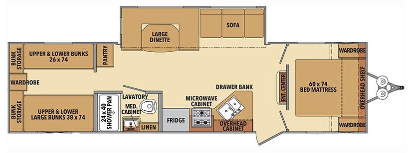 U-Shaped Dinette: Offers a spacious dining area that can also serve as additional sleeping space.
